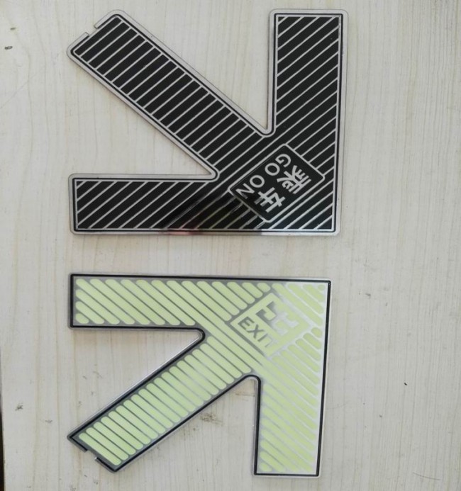 晚上会发光的不锈钢夜光自发光疏散标识牌 地铁站厅蓄光出口导向箭头